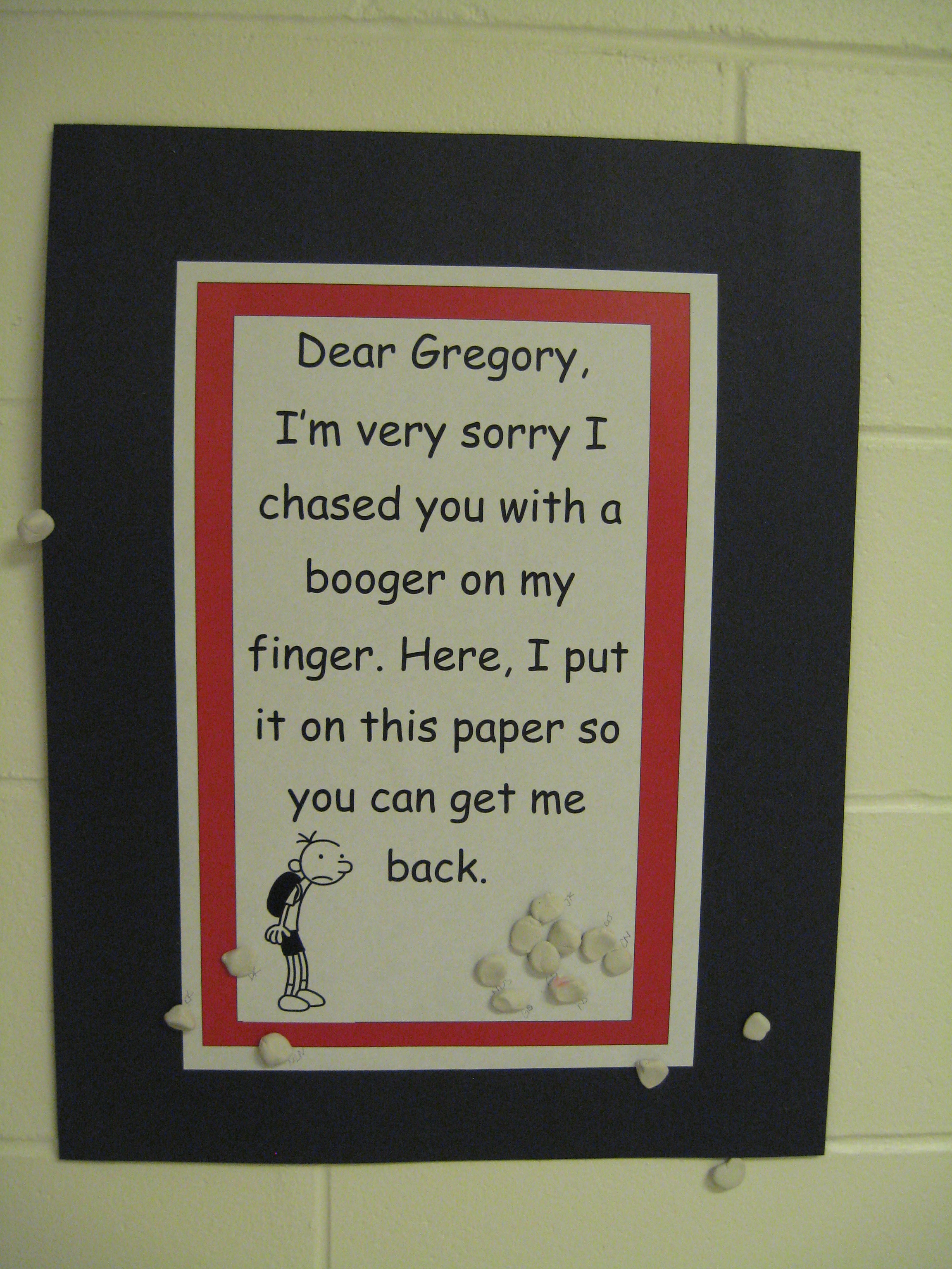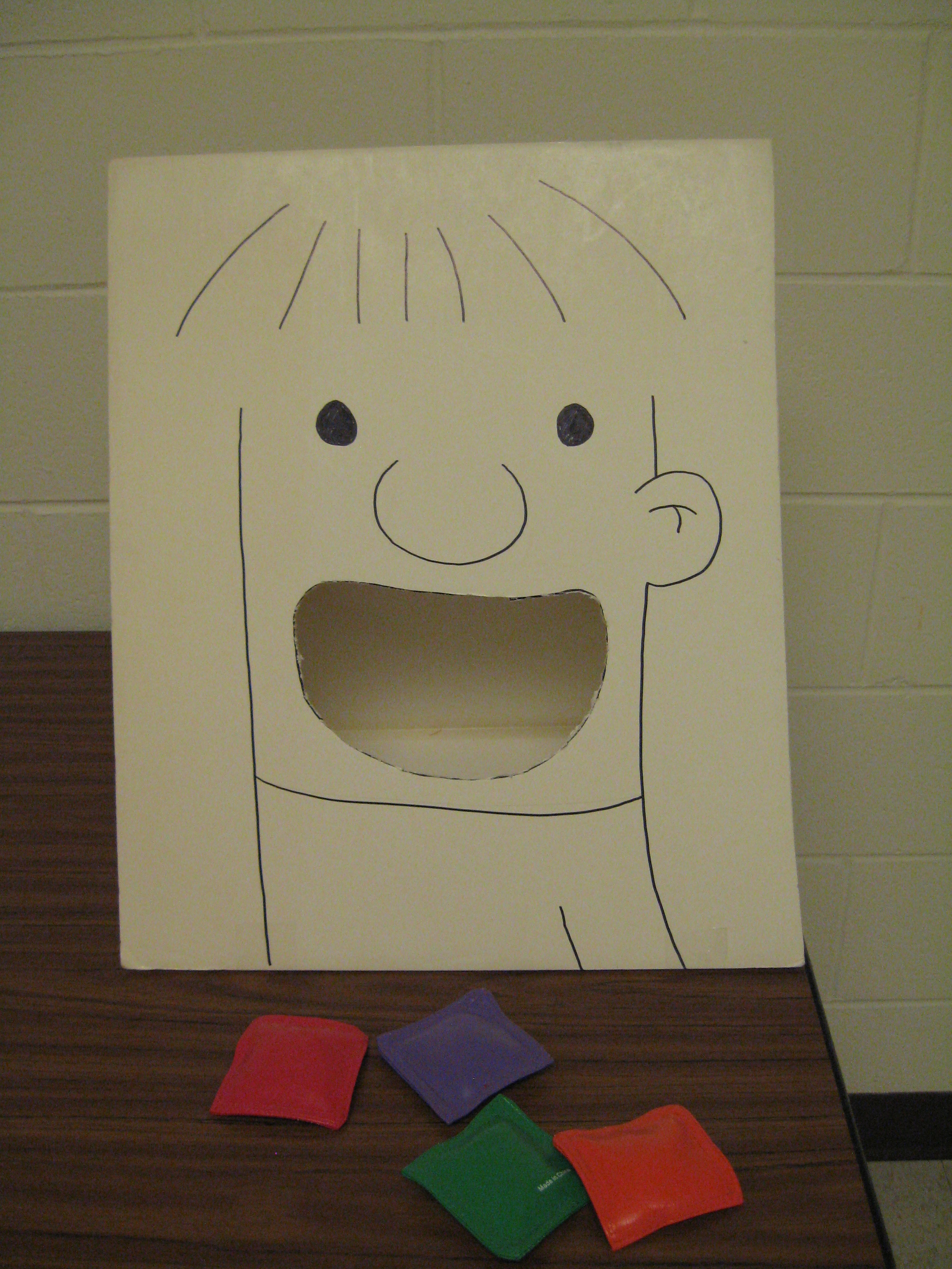 Some programs, like LEGO Club, are automatically going to be a hit. Unfortunately, book-centered programs are sometimes not so popular. To change this, I decided to do a program based on the beloved Diary of a Wimpy Kid series by Jeff Kinney. I had originally planned to set this up in stations, but based on the number of kids who attended and the fact that I did not have volunteer help, we did each activity as a group. The first activity was Pin the Booger on Greg Heffley. In the format of Pin the Tail on the Donkey, kids stuck “boogers” made of tacky poster adhesive to a poster of the character. Next was the Rowley Jefferson bean bag toss. I drew the character’s face on a large piece of foam board and cut out the mouth. Kids took turns trying to toss bean bags through the mouth. We then moved to tables for writing and drawing activities such as a trivia contest, a Pictionary-style guessing game, and shared comic drawing. Afterward, we did a team mummy wrap with toilet paper. At the end of the program, I drew names to win free Diary of a Wimpy Kid books. It was a fun program that attracted both boys and girls in the upper elementary crowd.
