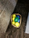 Egg Gathering-Plastic shaker eggs in paper bag nests hidden throughout the room